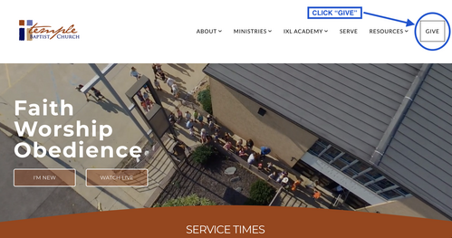 To give online or to log in to your online giving account, navigate to our website and click the "Give" button in the top right corner.